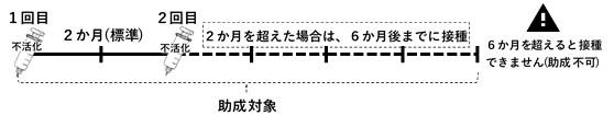 接種は下の図のように2カ月から6カ月の間隔をおいて2回接種が必要になります。